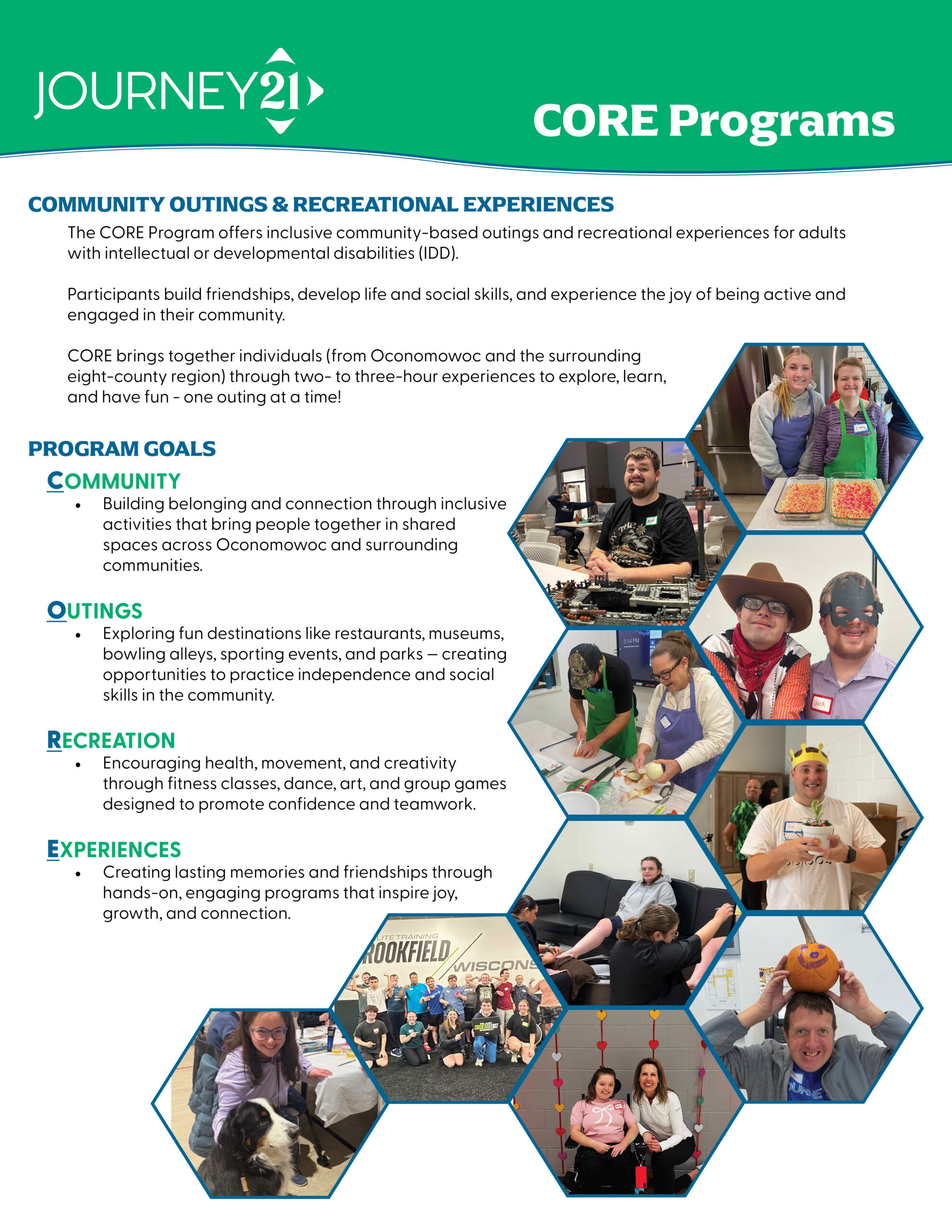 The CORE Program offers inclusive community-based outings and recreational experiences for adults with intellectual or developmental disabilities (IDD).